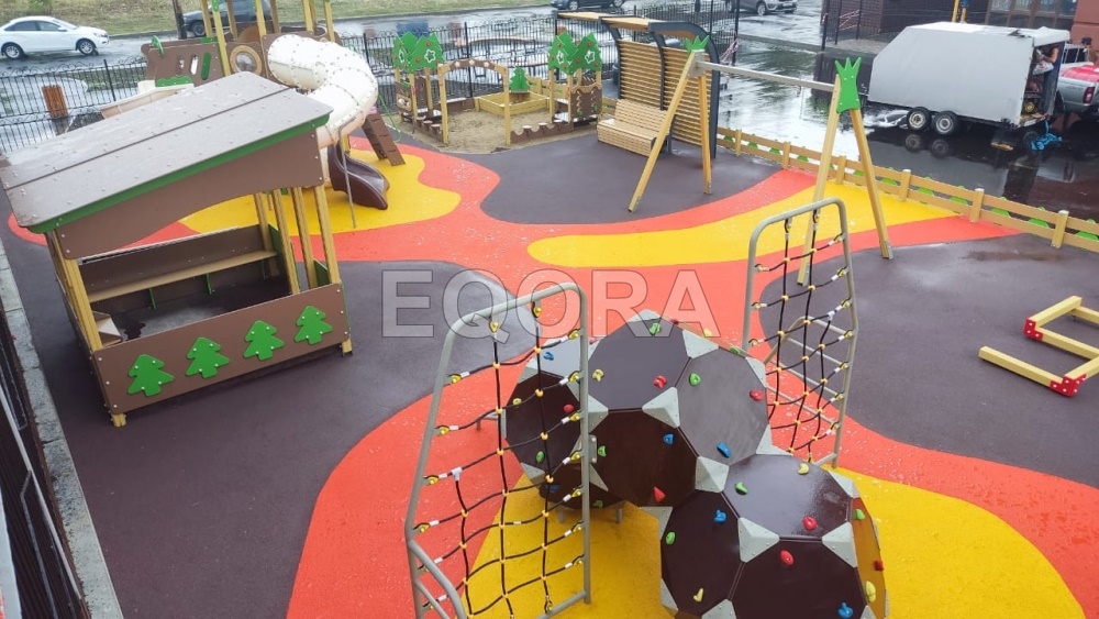 Простота монтажа и обслуживания делает покрытия из резиновой крошки экономически выгодным решением. Установка может быть выполнена относительно быстро, а уход за поверхностью не требует специальных навыков или дорогостоящих материалов.