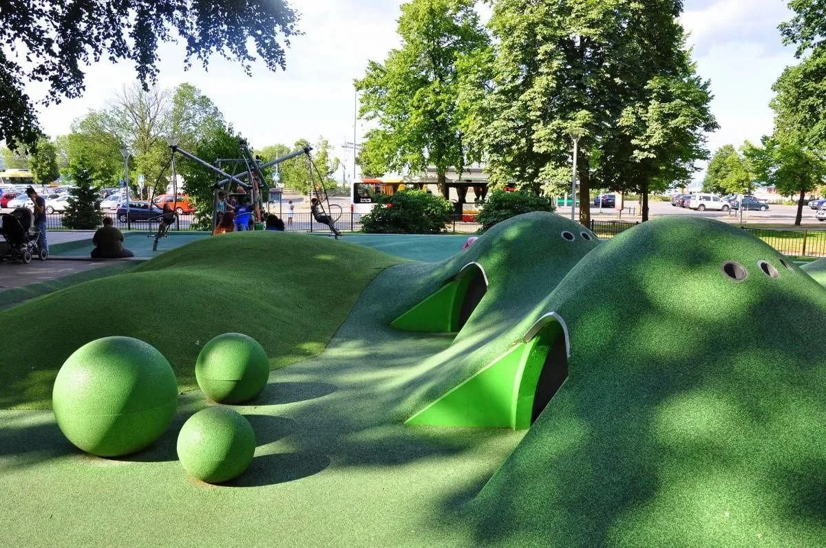 Геопластика холмов из резиновой крошки: безопасность и комфорт для детских игр в Клине